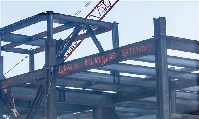 A group of iron workers in Long Island, New York, painted “get well” messages on steel beams to cheer up the children who could see them from their windows at the hospital they were working alongside.