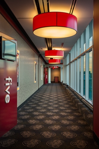 This AMC Theater project at Roosevelt Field, covering 44,000 square feet and 2 stories, included an interior renovation an an addition to the building. Renovations include new concessions, a box office plus upgrades to the lobby, bathrooms, and 8 auditoriums with stadium seating. Complete renovation to the exterior included a new curtain wall façade and GFRC exterior panels.