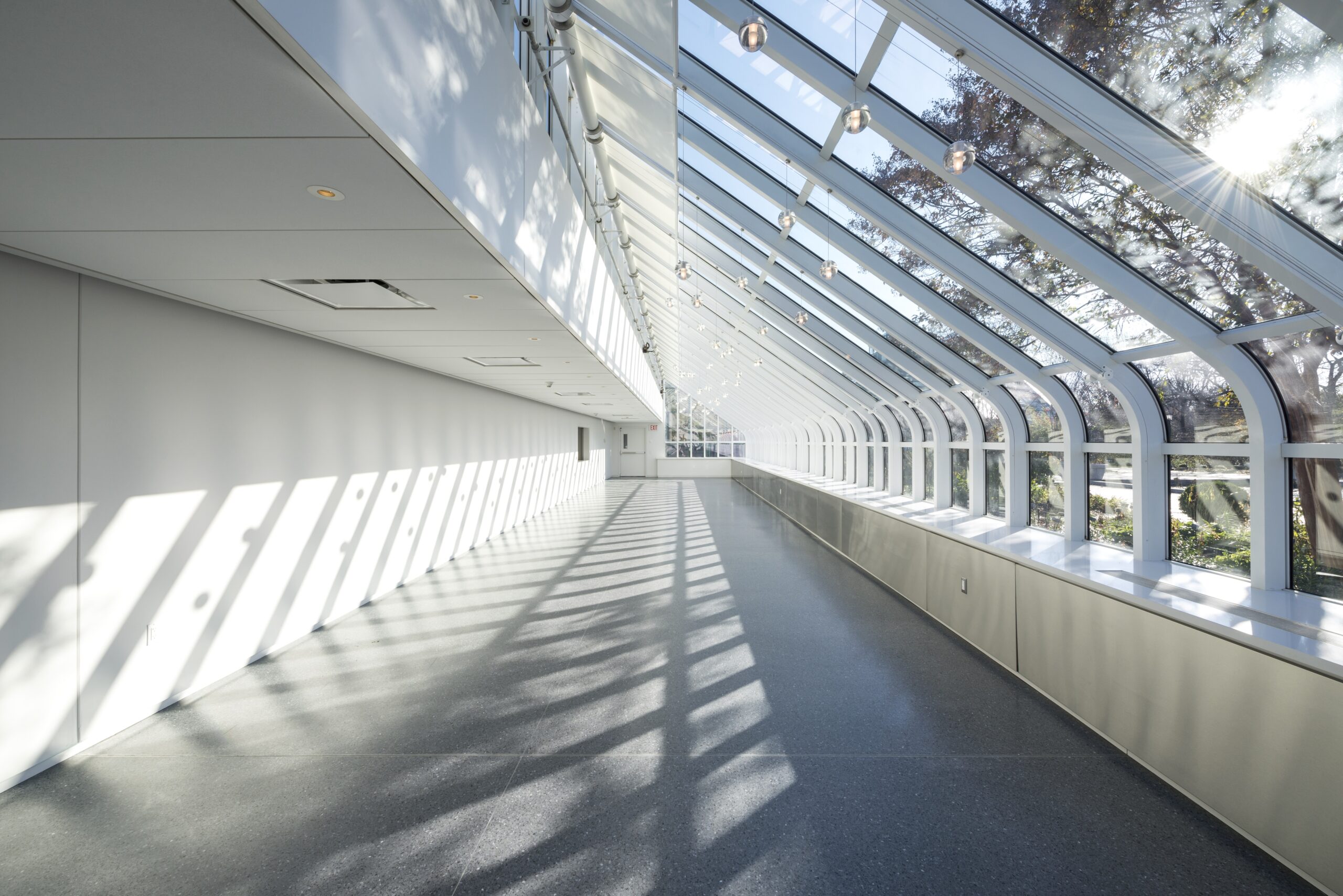 The renovated event space consists of a long, glass corridor for BBG catering services. The new building contains restrooms and a ticket booth and is approximately 1,350 square feet. The Kiosk (approximately 285 square feet) replaces the existing food tent on the terrace adjacent to the Steinhardt Conservatory. The Event Space is an interior renovation of a former retail space of approximately 2,800 square feet. The existing link between the event space and the Palm House was converted to a lobby providing additional access to the garden.