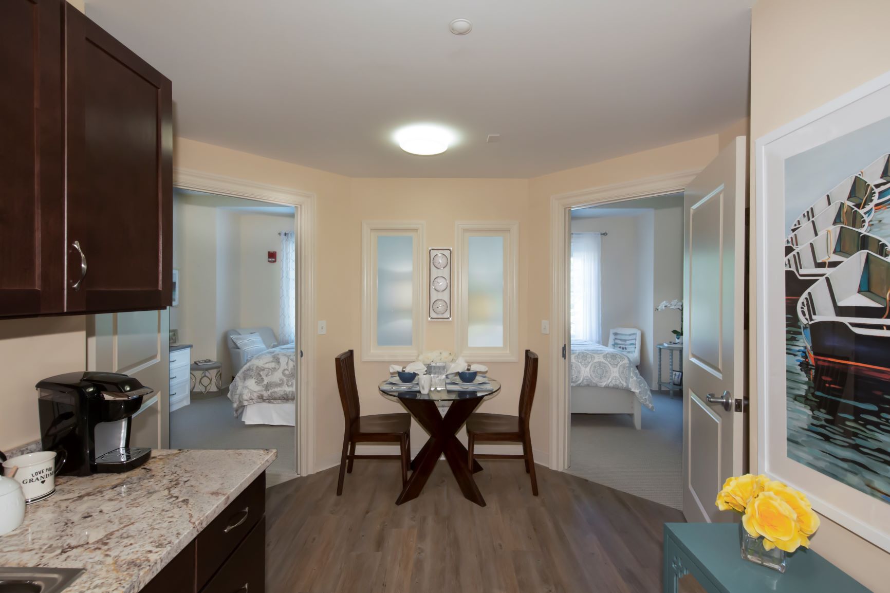 The community offers 101 assisted living and memory care apartments available in a variety of sizes and floor plans, for up to 136 residents. There are various amenities, including a balcony, wellness center offering fitness and physical therapy and a private family room featuring a full kitchen and dining area for private functions.