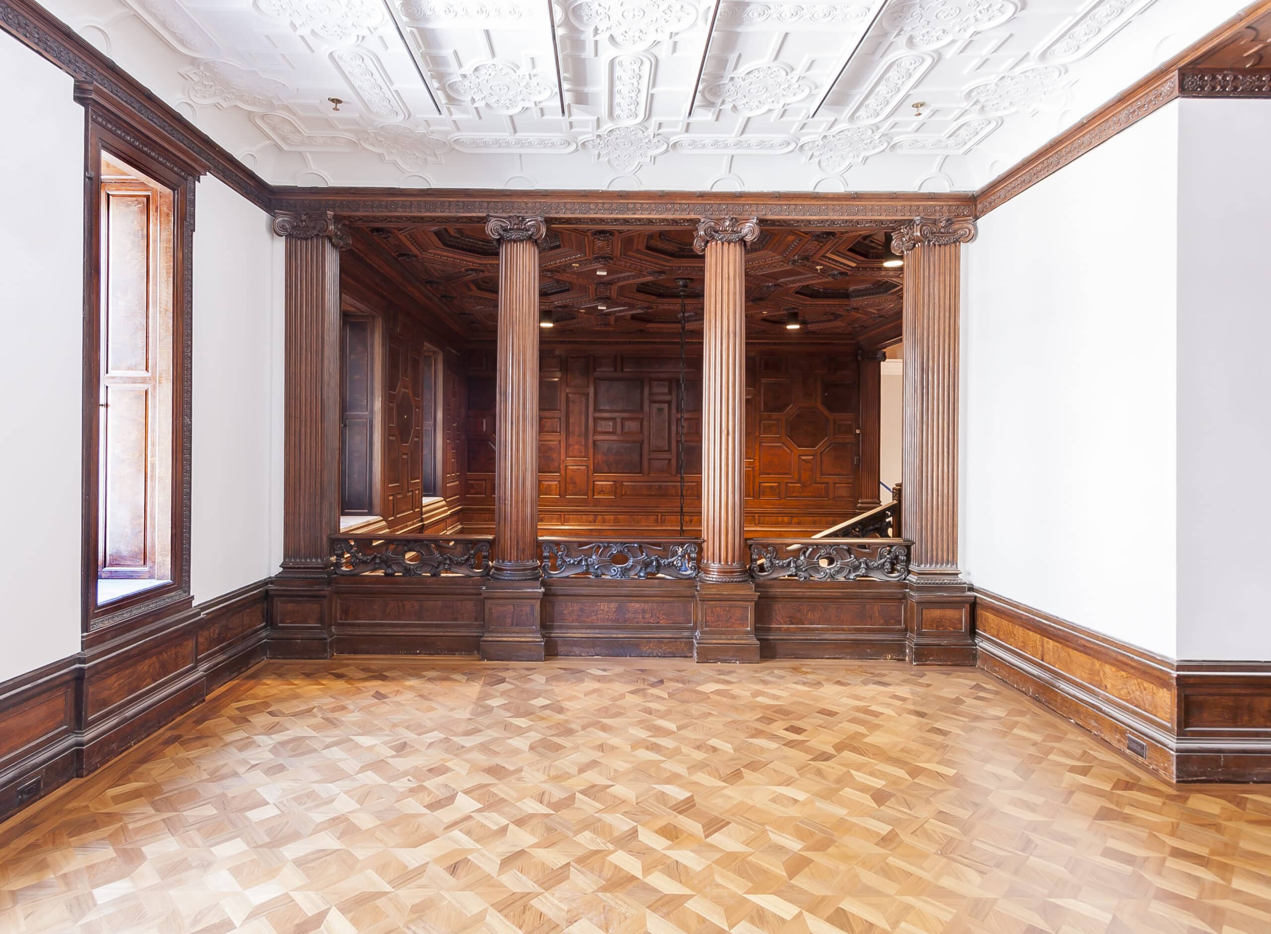 The renovation expanded exhibition space by 7,000 square feet by converting the third floor of the Carnegie Mansion, currently the library, to new contemporary galleries, and moving the library to two adjacent townhouses and improving gallery spaces and infrastructure at the Mansion and townhouses. The Carnegie Mansion project also includes new freight elevators, new registrar offices, and new art conservation labs. Important public spaces such as the main stair accessing the gallery floors and restrooms were renovated and expanded to enhance the visitor experience.
