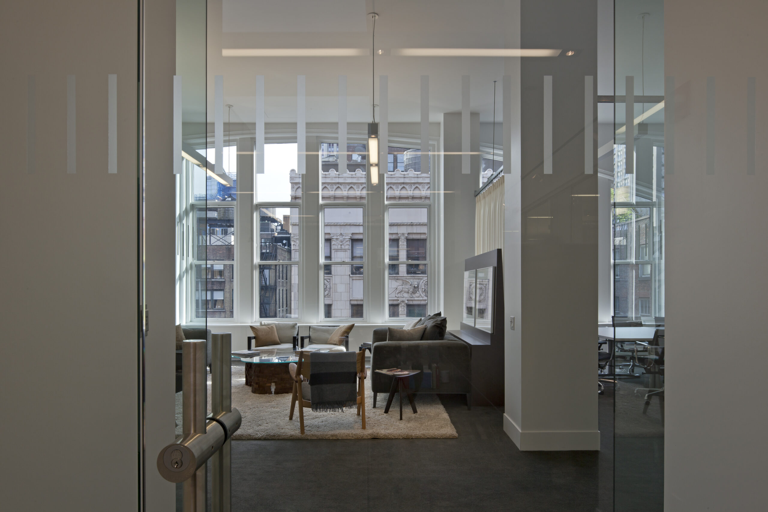 Located at 15 West 38th Street in Manhattan, this project includes a 10,000-square-foot renovation of the 11th and 12th floors for the U.S. Headquarters for Hudson’s Bay Trading Company. The interior fit-out includes a spiral staircase connecting the floors, 20 offices, 4 conference rooms, cubical workspace, a reception area with skylights above, and a kitchen area.