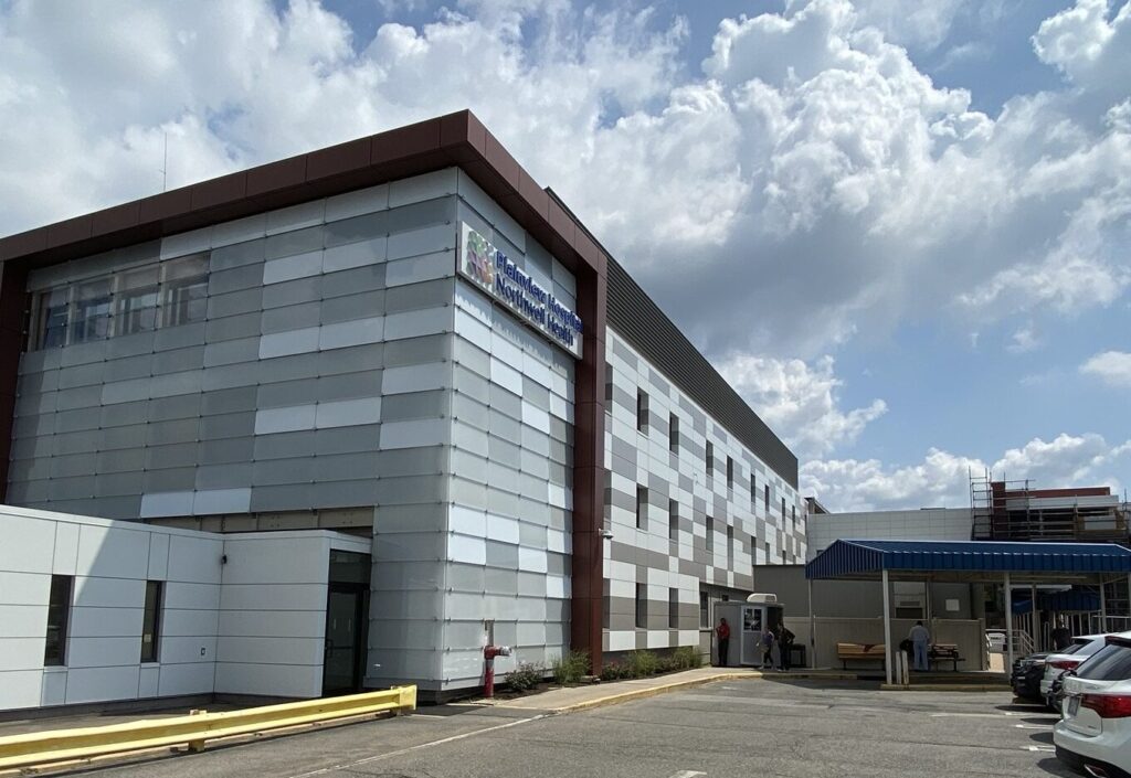 Northwell Health Plainview Hospital is a 3-phase façade renovation project. The first two phases required removing and replacing the existing façade with a metal panel system. While the exterior work was performed, we provided a permanent/temporary wall to separate the existing hospital spaces (ICU, Telemetry, Physical Therapy, and support offices). The removal and replacement of the façade was phased to minimize the impact on the hospital’s operations.