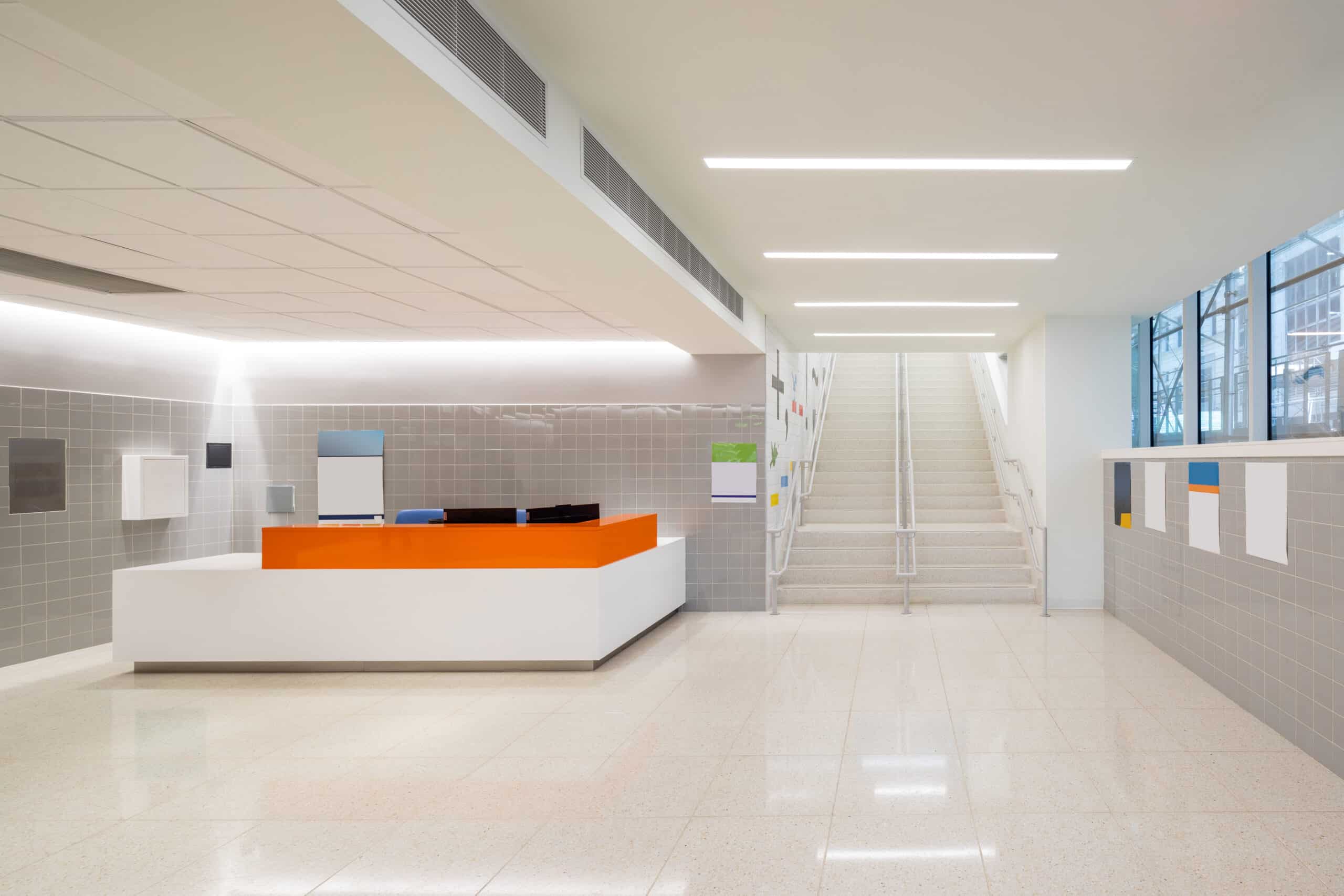 The new PS 464M is located in a 38-story mixed development on Trinity Place in Manhattan, NY. The new 90,000-square-foot school occupies 9 development floors of 42 Trinity Place in Manhattan’s Financial District.