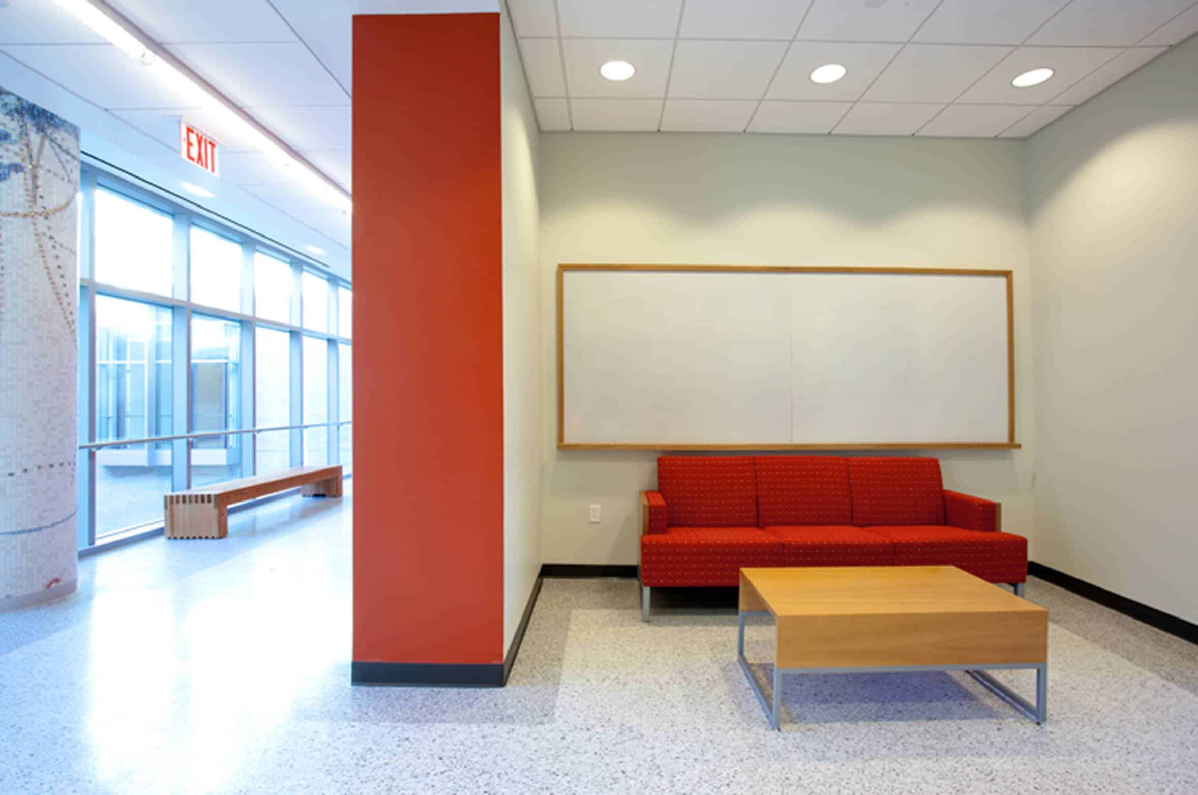 Virtually untouched since its construction in 1951, the existing research and teaching laboratories in Queens College Remsen Hall were outdated and worn. The modernization included a new 26,000 square-foot addition that houses chemistry teaching and research laboratories, and an 130,000 SF renovation of the 60-year-old Remsen facility to accommodate the biological sciences