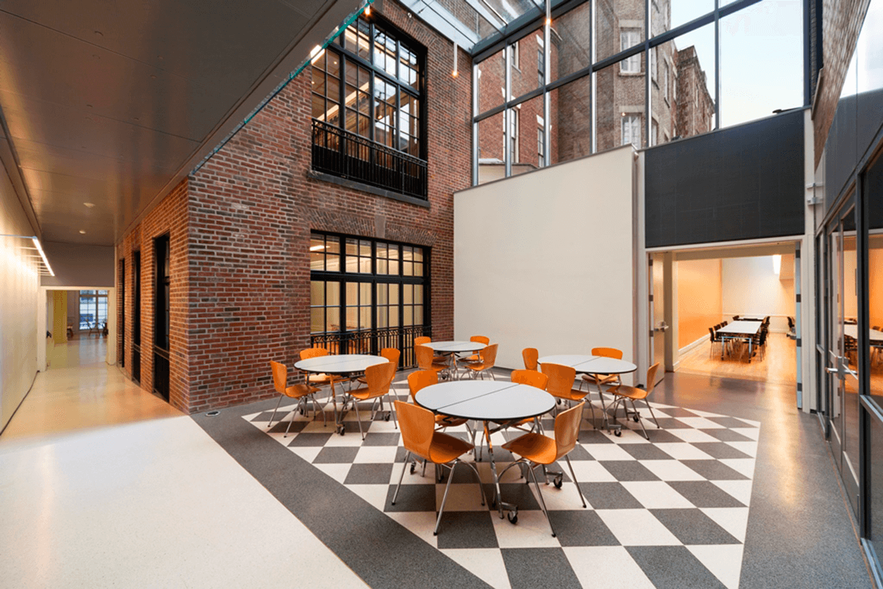 This was a unique project because it had to be completed in multiple phases. The scope for Phases 3 & 4 included work on select floors in the main school at 91st Street (Phase 3) as well as the structural make-ready of the Town House (Phase 4). The connector phase included construction of the glass connector and interior fit-out of same. Phase 5 included the fit-out of the Town House. Phase 6 included renovation of select floors in the main school at 91st Street. Finally, Phase 6 included renovation of select floors in the main school at 91st Street, OSBORNE wing.