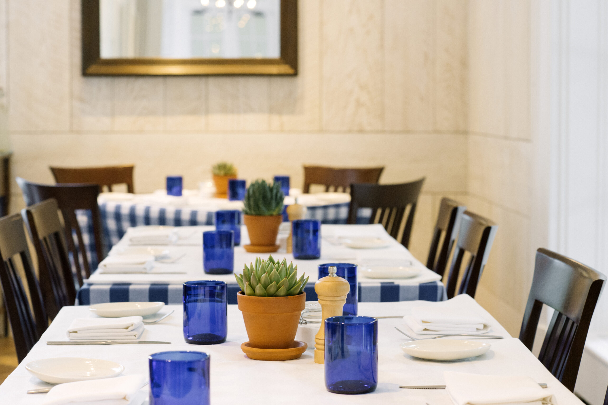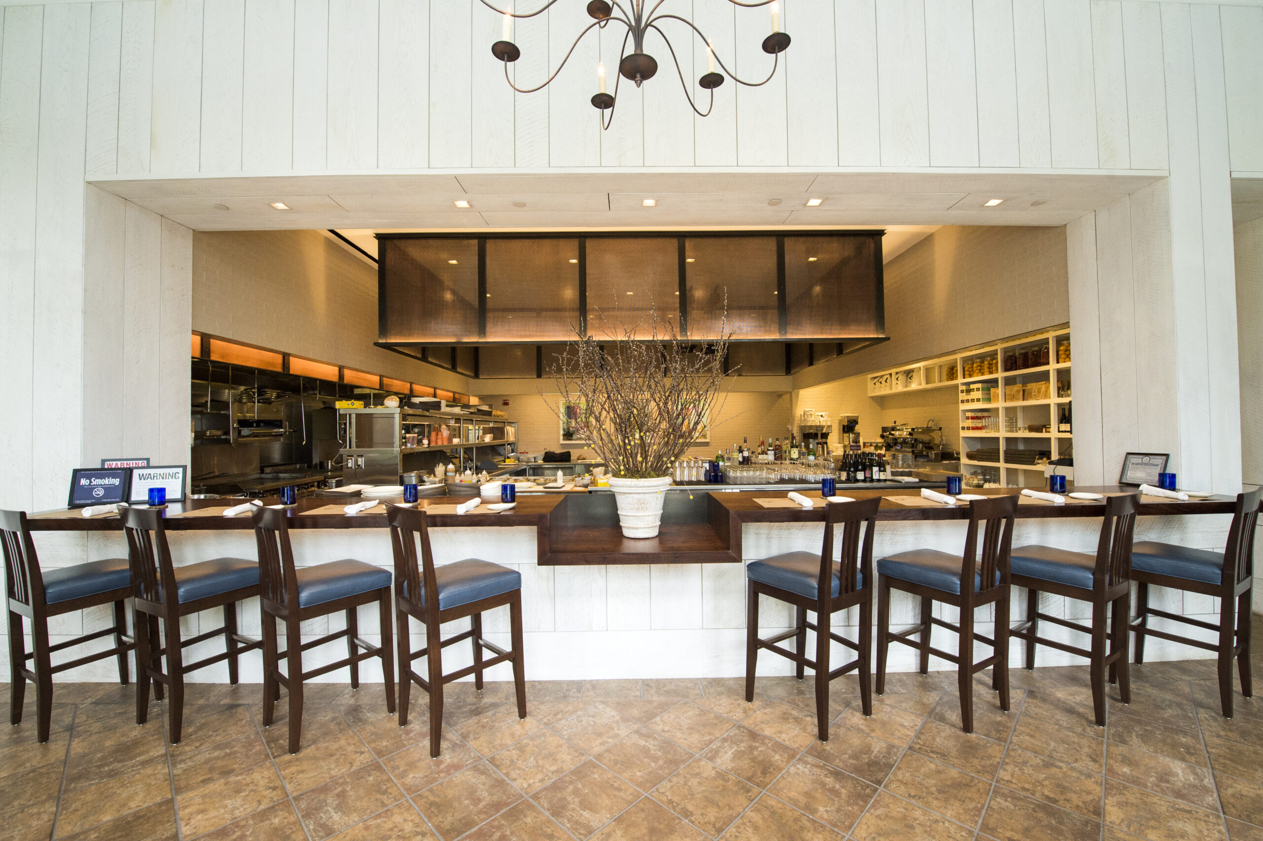 The space offers beautiful views of the Garden with plenty of outdoor seating. With architecture by Bentel & Bentel, the space features low banquet seating, an expansive walnut-topped bar, and an open kitchen designed for exhibition cooking.