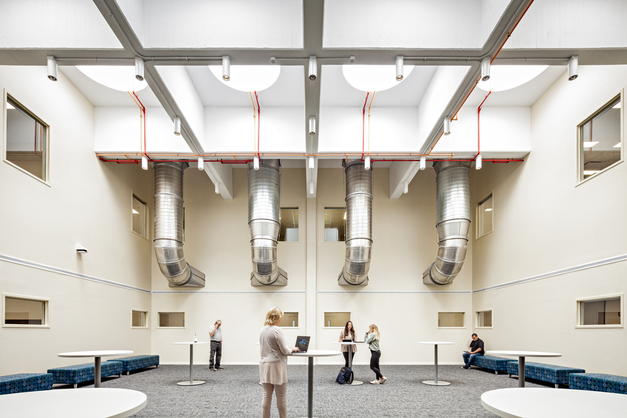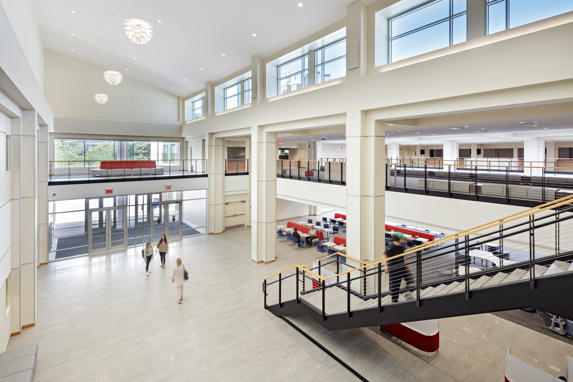 The original 1967 building was used as an internal ‘Main Street’ connecting the North and South sides of the campus. Those 2 entries and that internal street arcade had to be preserved and visually strengthened. The newly renovated facility provides a holistic approach to addressing students’ needs, as a home of centralized services, programs and initiatives to provide a more efficient and holistic campus experience.