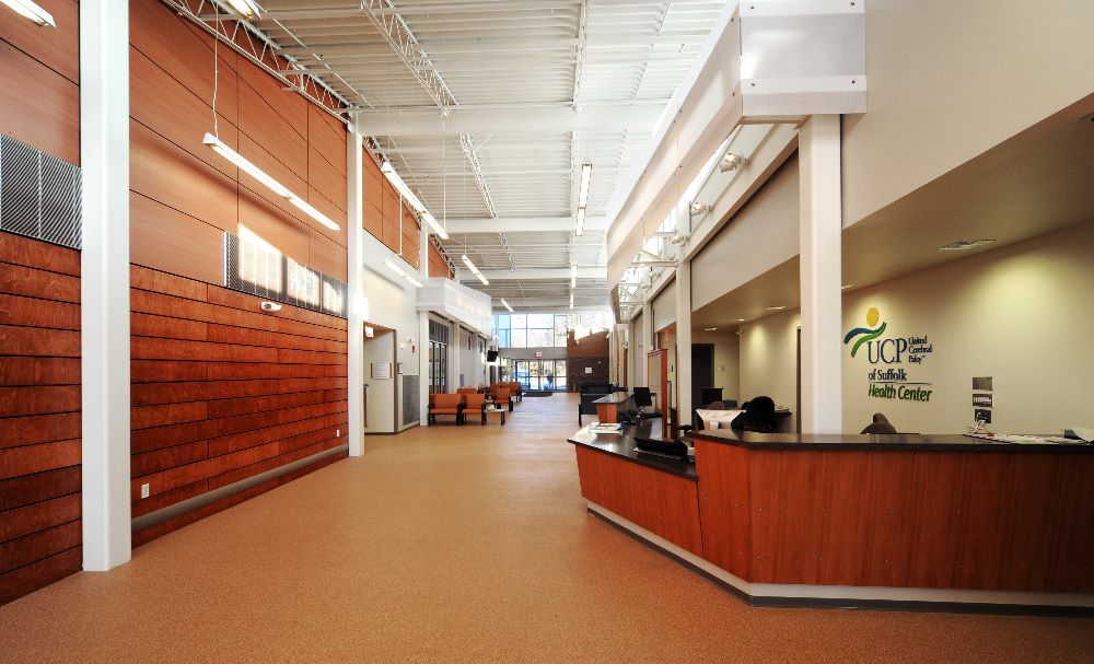 The 25,000-square-foot, 1-story UCP Suffolk Diagnostic Treatment Center facility, designed by Perkins Eastman Architects PC, offers primary and specialty medical, rehabilitative, mental health, and dental services to individuals with disabilities, seniors, and others in the Long Island community.