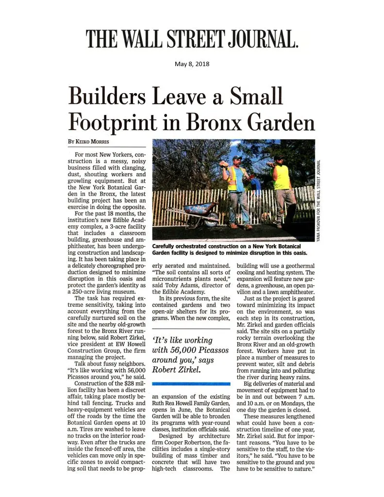 Click here to read the full article: Wall Street Journal: In the Botanical Garden, Construction Workers Tiptoe Quietly